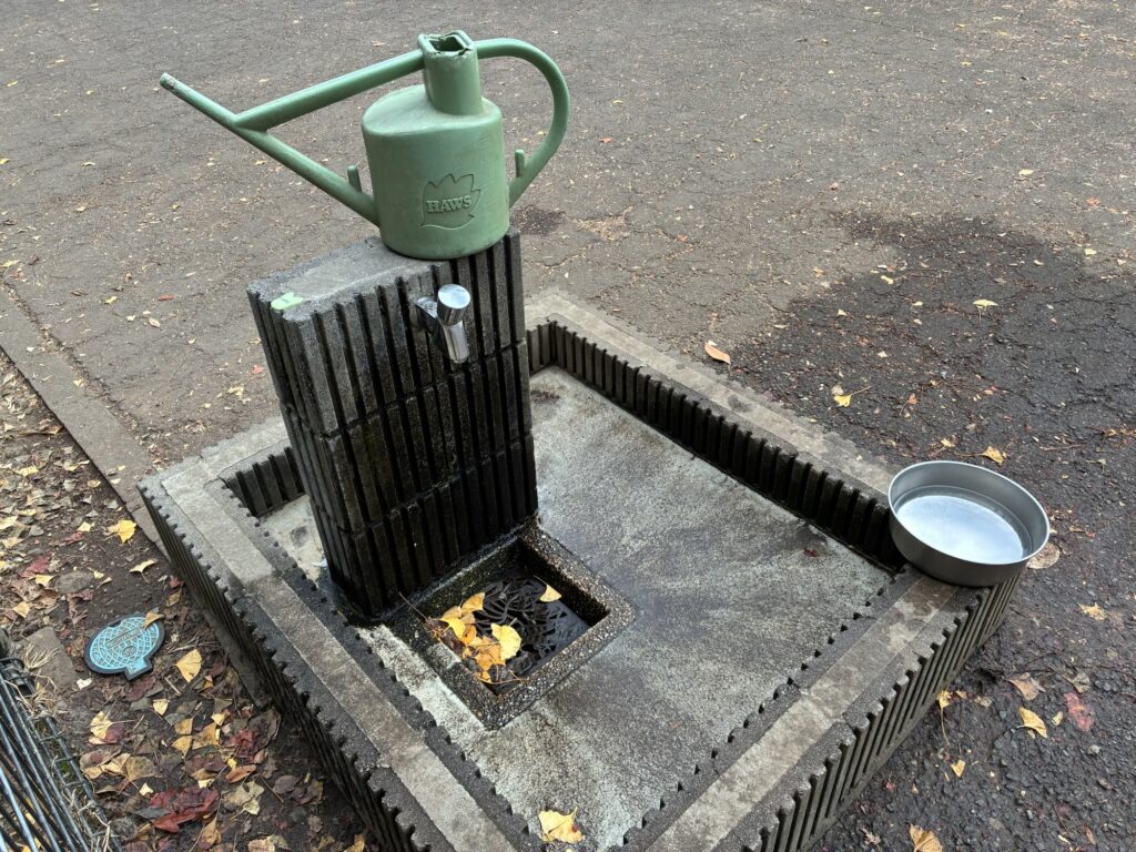 水飲み場にはオシッコなど掃除にも便利なジョウロが置いてあります