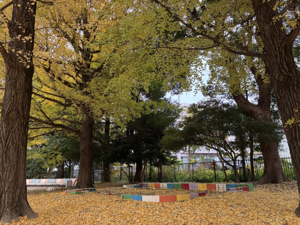 落葉の時期には地面一面が金色に染まり、子どもが走り回ると葉っぱがふわっと舞い上がります。