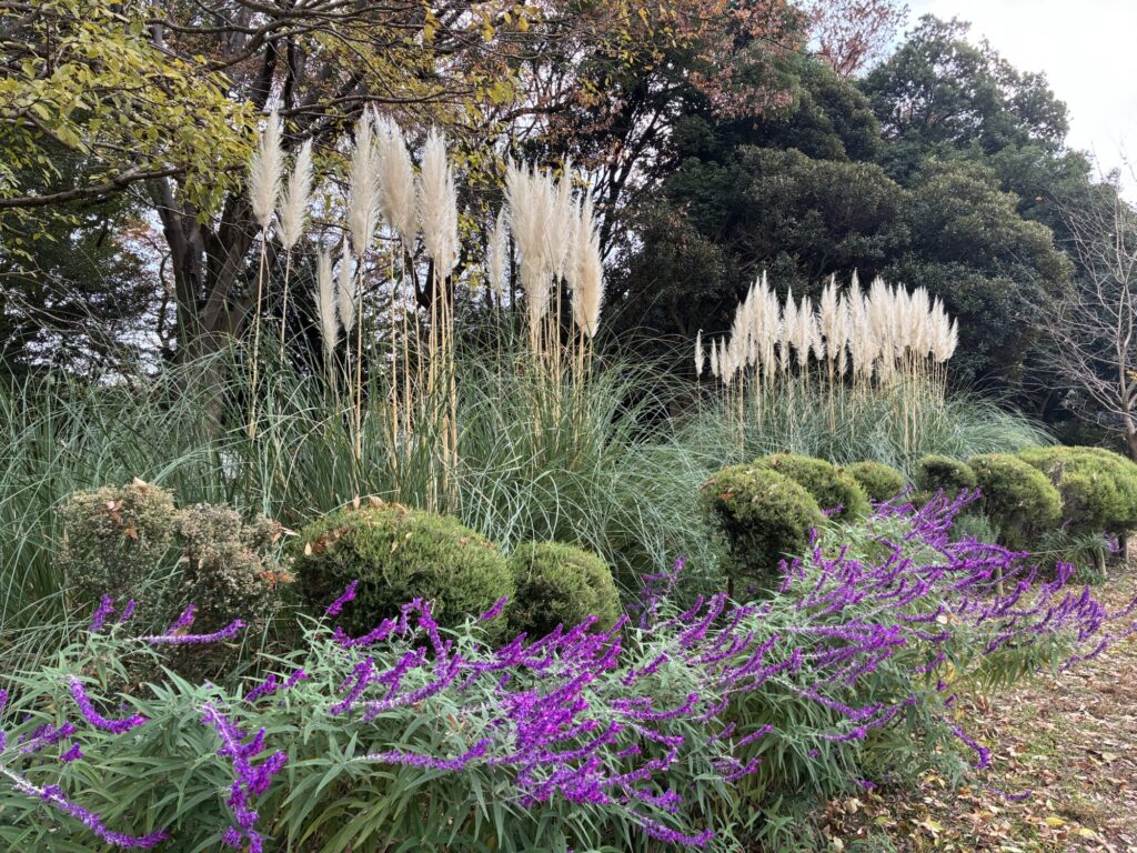 駅から公園へ向かう最初の導線にある、花壇と大きなススキも秋の雰囲気を一気に高めてくれます。