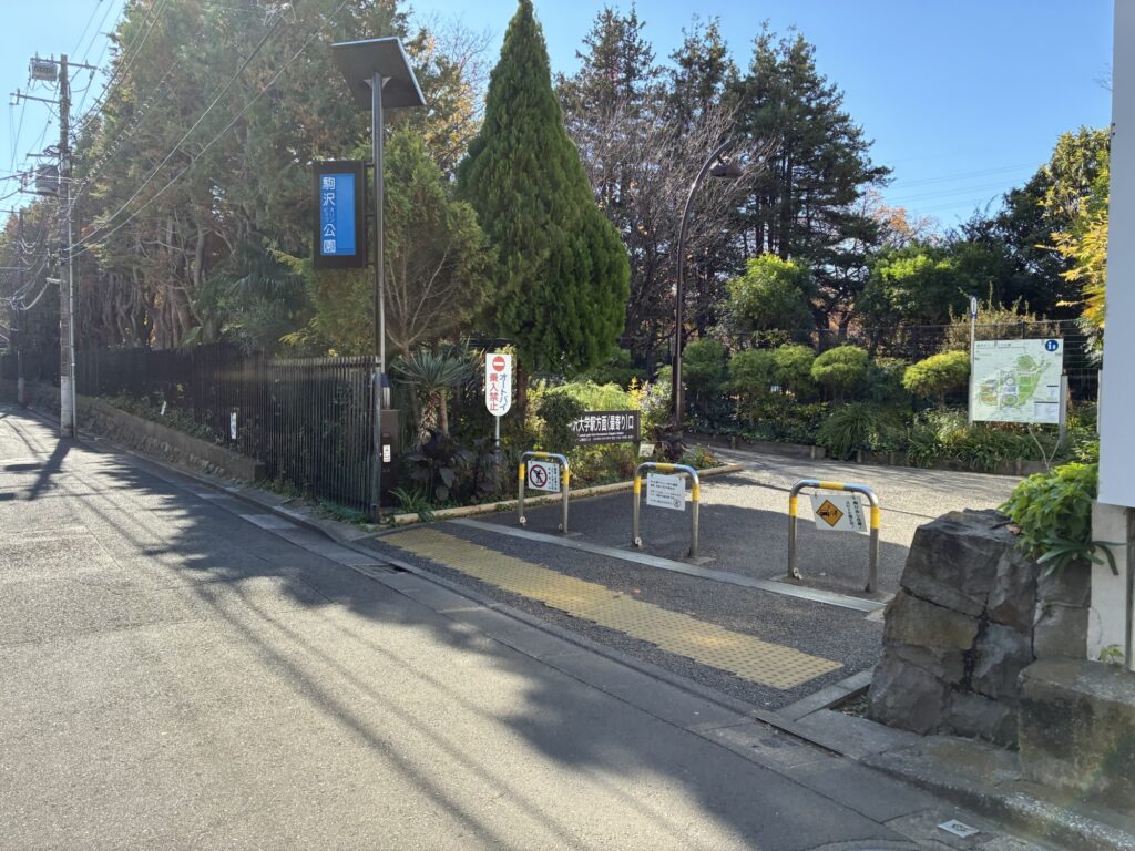 そのまま細い道を直進すると、駒沢オリンピック公園の 駒沢大学駅方面口 に到着します。