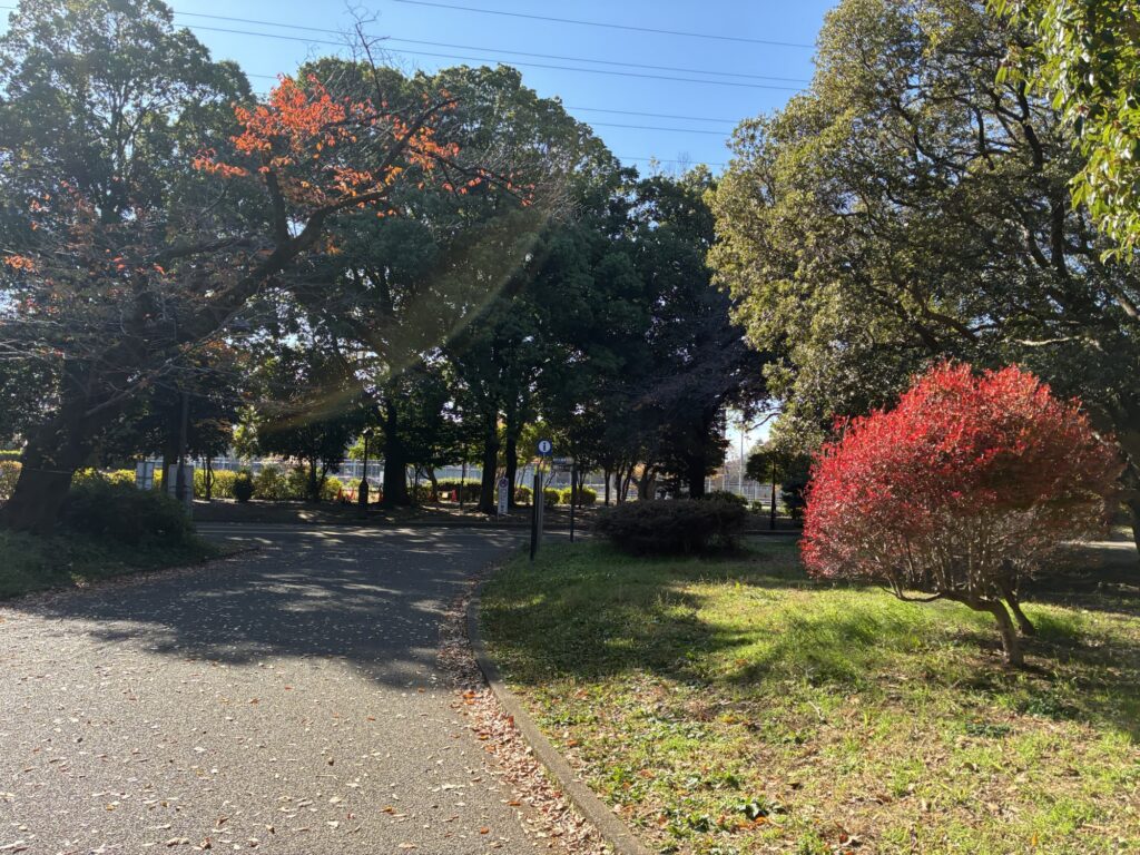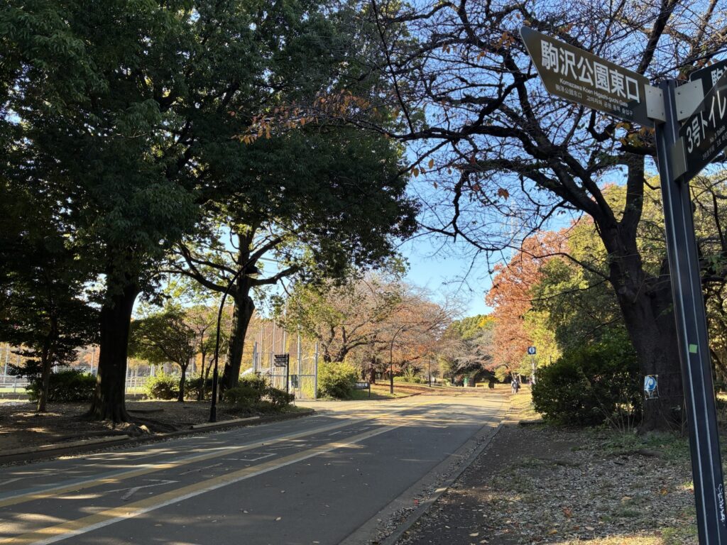 このタイミングで 右側の「世田谷区駒沢一丁目公園」方面へ道なりに曲がります。