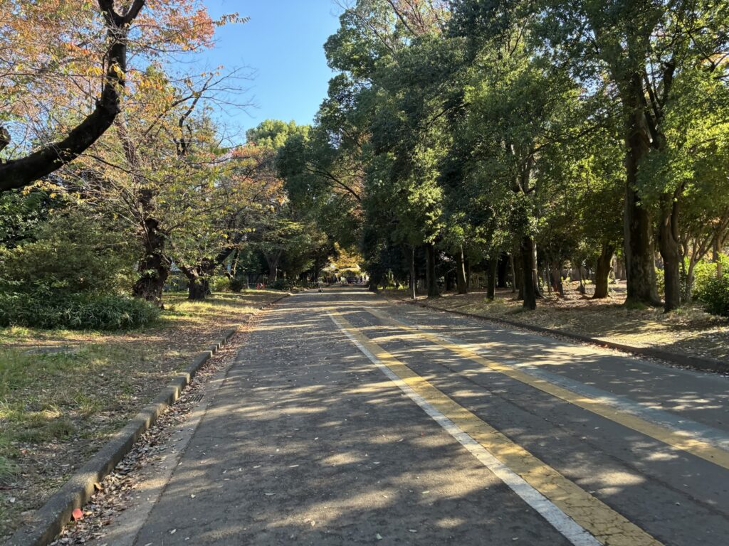 向かって左側に Sporty Coffee komazawa が見えたら、公園まであと少し。